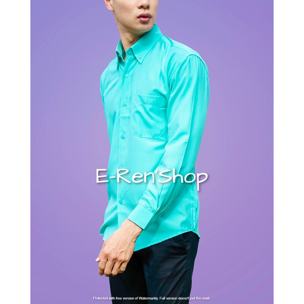 Jual Kemeja Pria Lengan Panjang Polos Geoland Warna Hijau Turkis Indonesia Shopee Indonesia